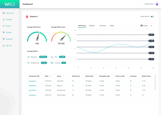 Through these assessments and our own data insights, discover how WriQ can provide you with those much needed benchmarks on a student, classroom and district level to effectively improve writing performance.